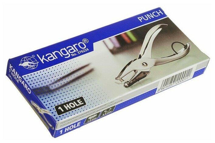 Дырокол стальной 10 листов, Kangaro One Hole, на 1 отверстие, металлик