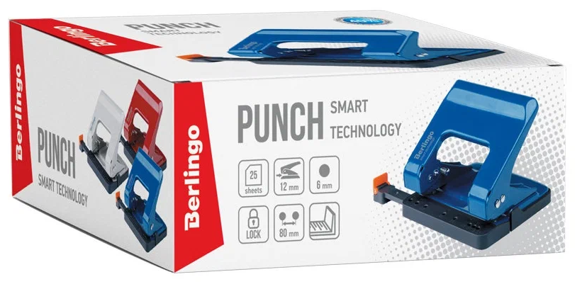 Дырокол Berlingo Smart Technology, до 25 листов, энергосберегающий, с фиксатором, синий (DDm_25203)