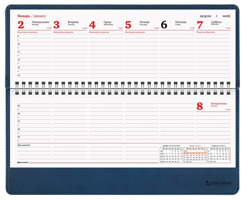 10 цен на Ежедневник-планер (планинг) датированный на 2023 год формата 305х140 мм Brauberg Favorite, под кожу, темно-синий