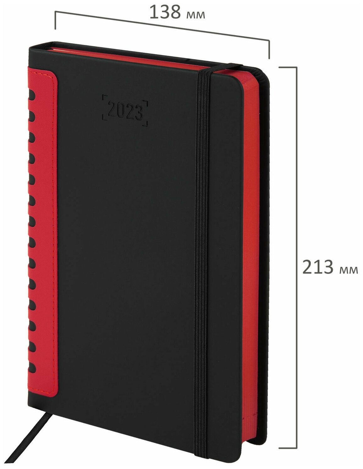 Ежедневник-планер (планинг) / записная книжка / блокнот датированный на 2023 год формата А5 (138x213 мм) Brauberg Original, под кожу, черный/красный