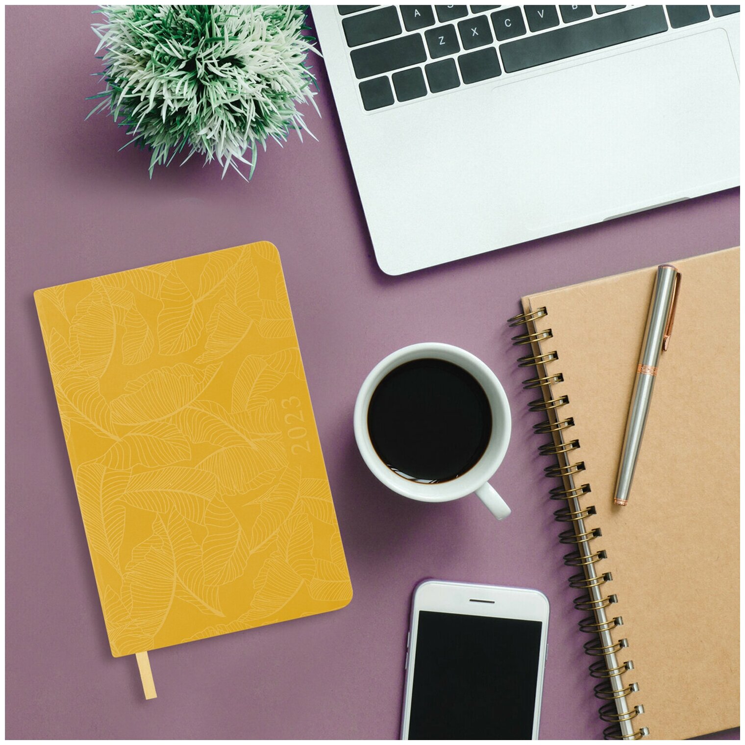 10 цен на Ежедневник датированный 2023 А5 138x213 мм BRAUBERG "Foliage", под кожу, желтый, 114102