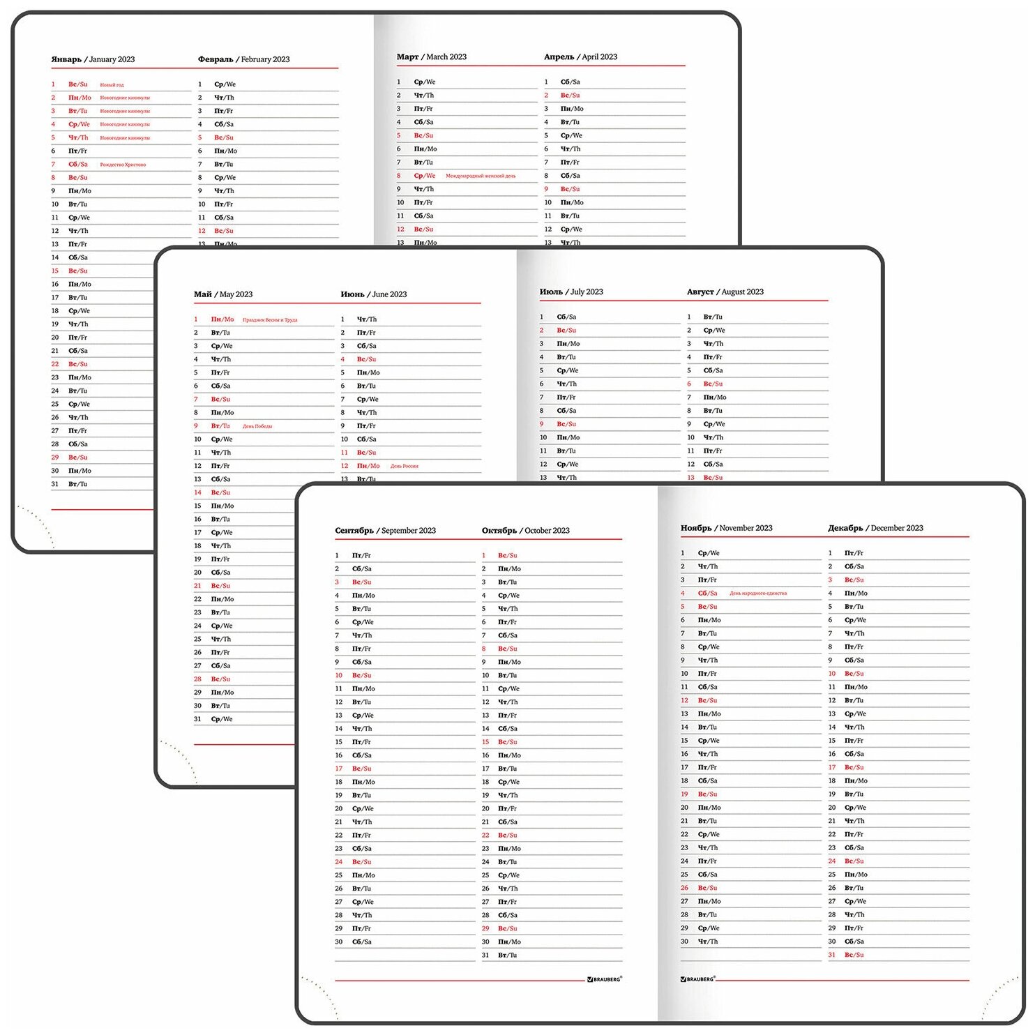 Ежедневник-планер (планинг) / записная книжка / блокнот датированный на 2023 год формата А5 (138x213 мм) Brauberg Foliage, под кожу, сиреневый