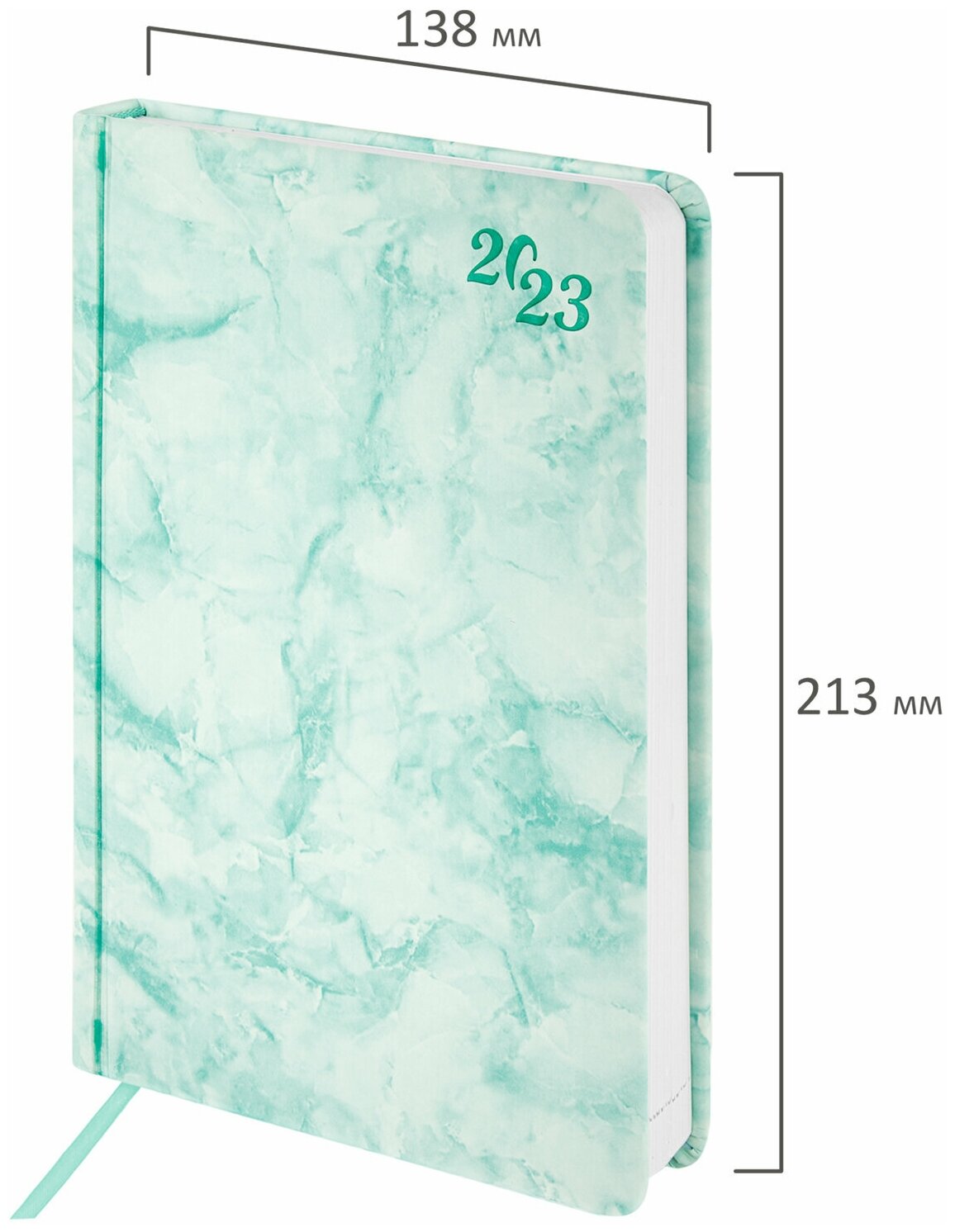 10 цен на Ежедневник-планер (планинг) / записная книжка / блокнот датированный на 2023 год формата А5 (138x213 мм) Brauberg Marble, под кожу, бирюзовый