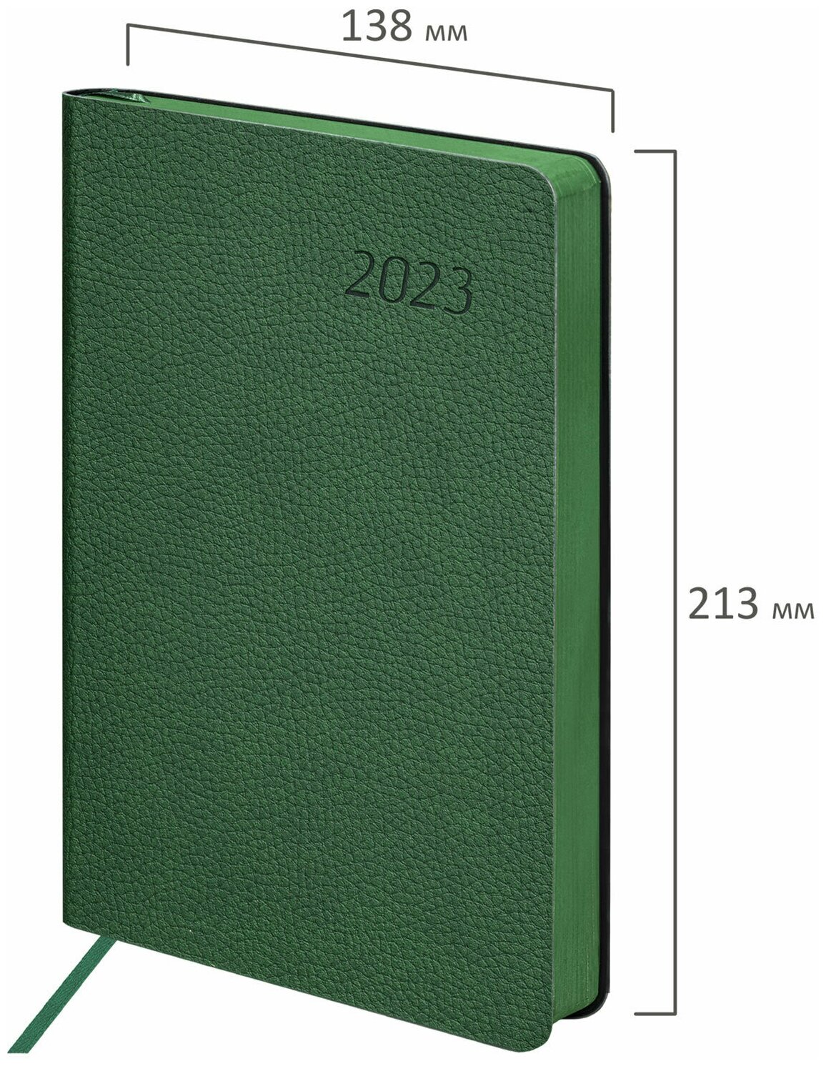 Ежедневник-планер (планинг) / записная книжка / блокнот датированный на 2023 год формата А5 (138x213 мм) Brauberg Stylish, под кожу, зеленый информация:
