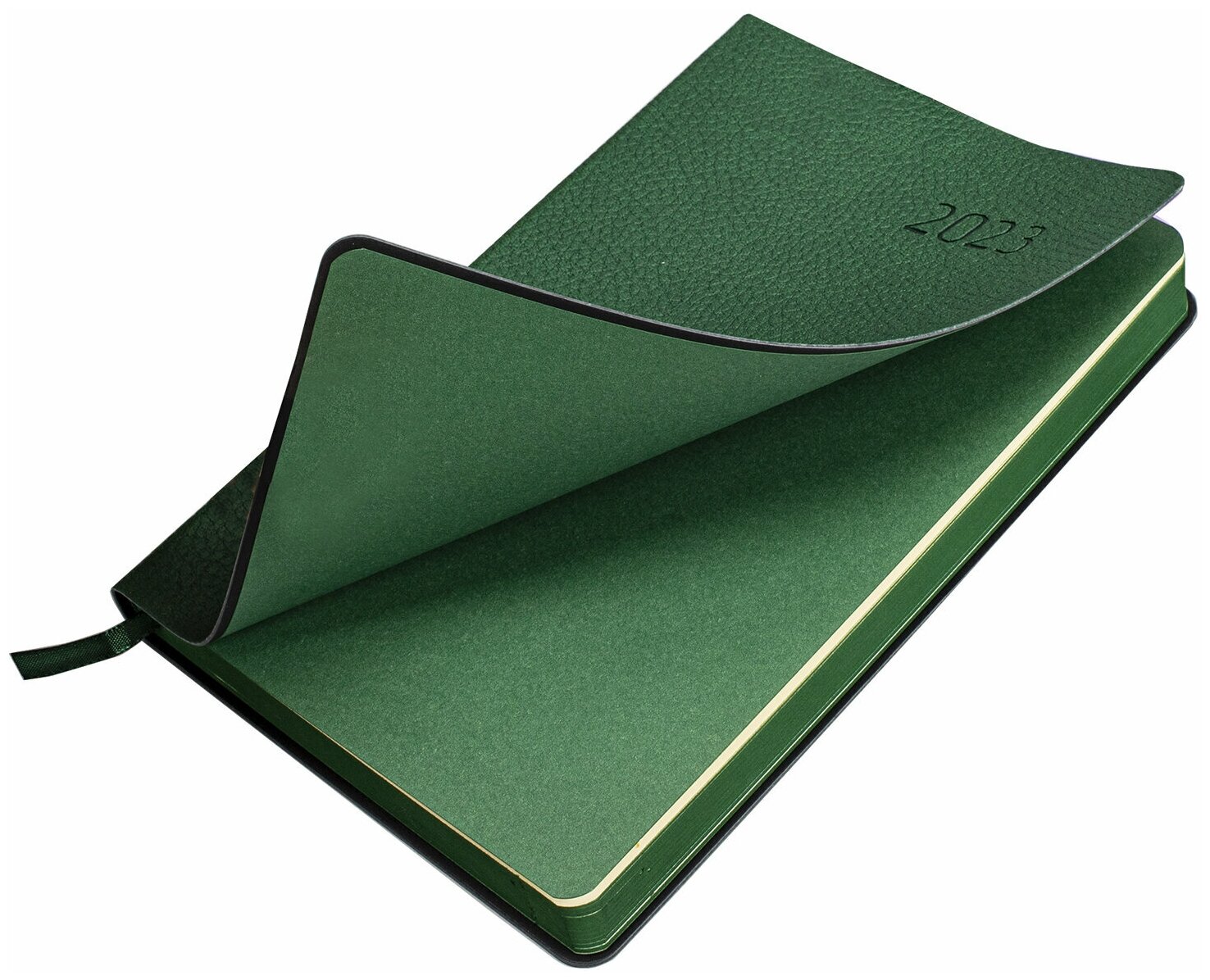 Ежедневник датированный 2023 А5 138x213 мм BRAUBERG Stylish, под кожу, зеленый, 114074