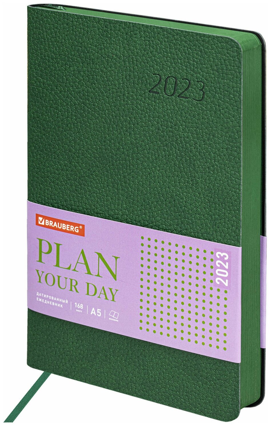 Отзывы на Ежедневник-планер (планинг) / записная книжка / блокнот датированный на 2023 год формата А5 (138x213 мм) Brauberg Stylish, под кожу, зеленый