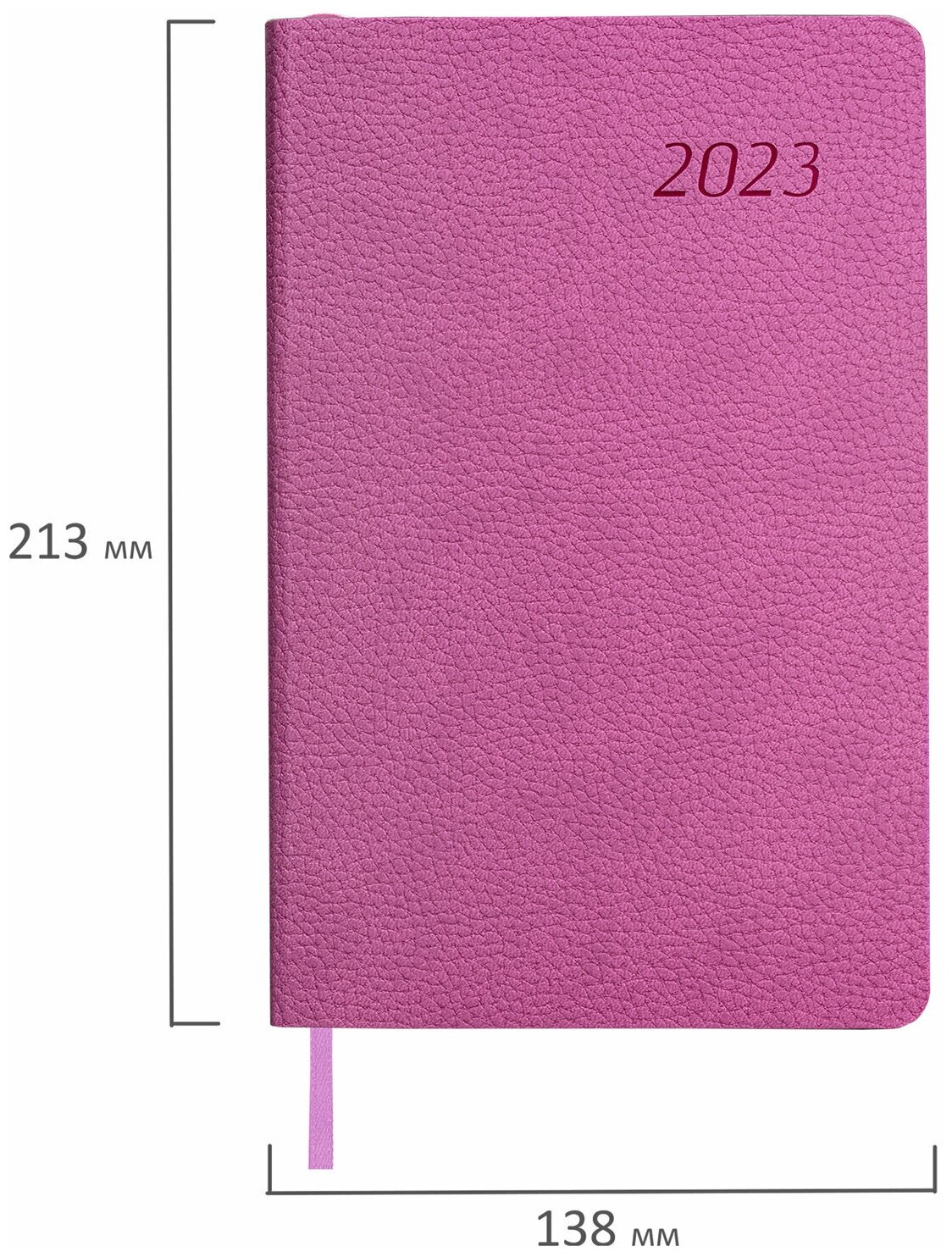 Ежедневник-планер (планинг) / записная книжка / блокнот датированный на 2023 год формата А5 (138x213 мм) Brauberg Stylish, под кожу, розовый
