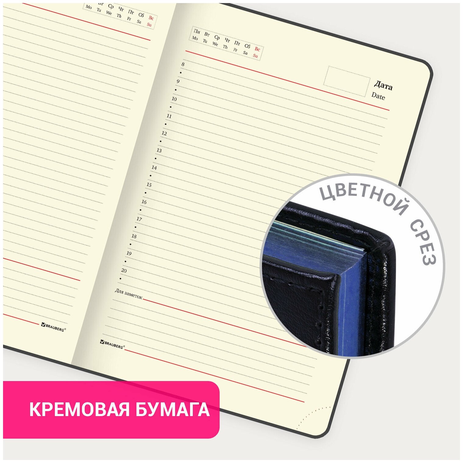 Ежедневник недатированный А5 138х213 мм BRAUBERG "FLAME", под кожу, 160 л., черный, синий срез, 113427, 113427 834 ₽