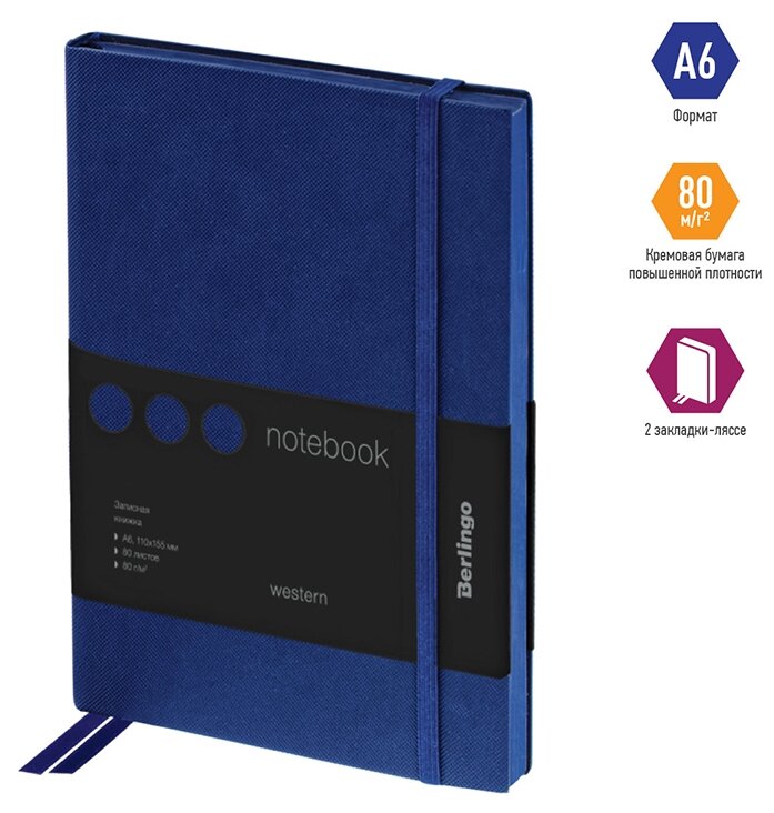 Записная книжка Berlingo А6, 80 листов, кожзам, "Western", с резинкой, синий (NB0_85602)