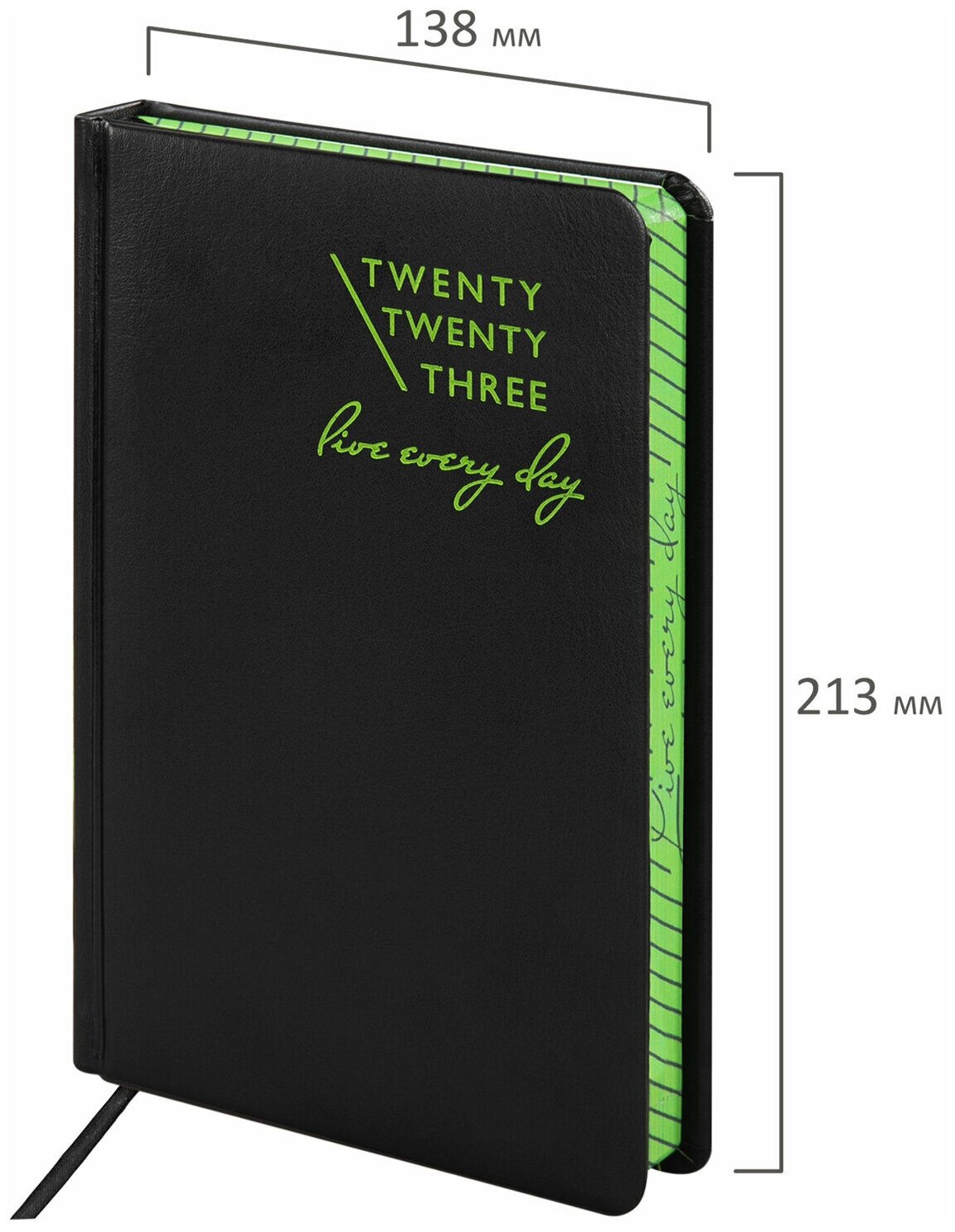 Отзывы на Ежедневник-планер (планинг) / записная книжка / блокнот датированный на 2023 год формата А5 (138x213 мм) Brauberg Chameleon, под кожу, черный/зеленый