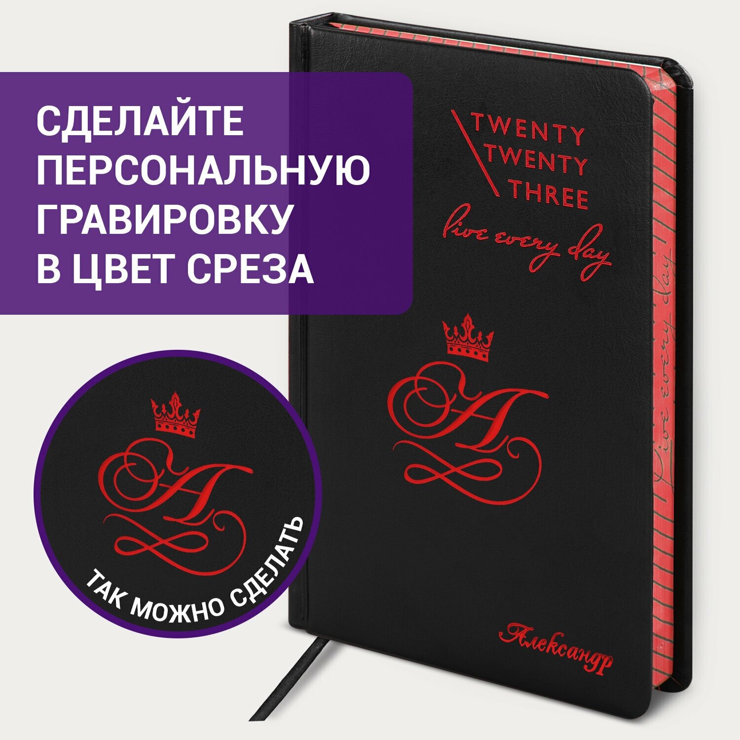 Ежедневник-планер (планинг) / записная книжка / блокнот датированный на 2023 год формата А5 (138x213 мм) Brauberg Chameleon, под кожу, черный/красный