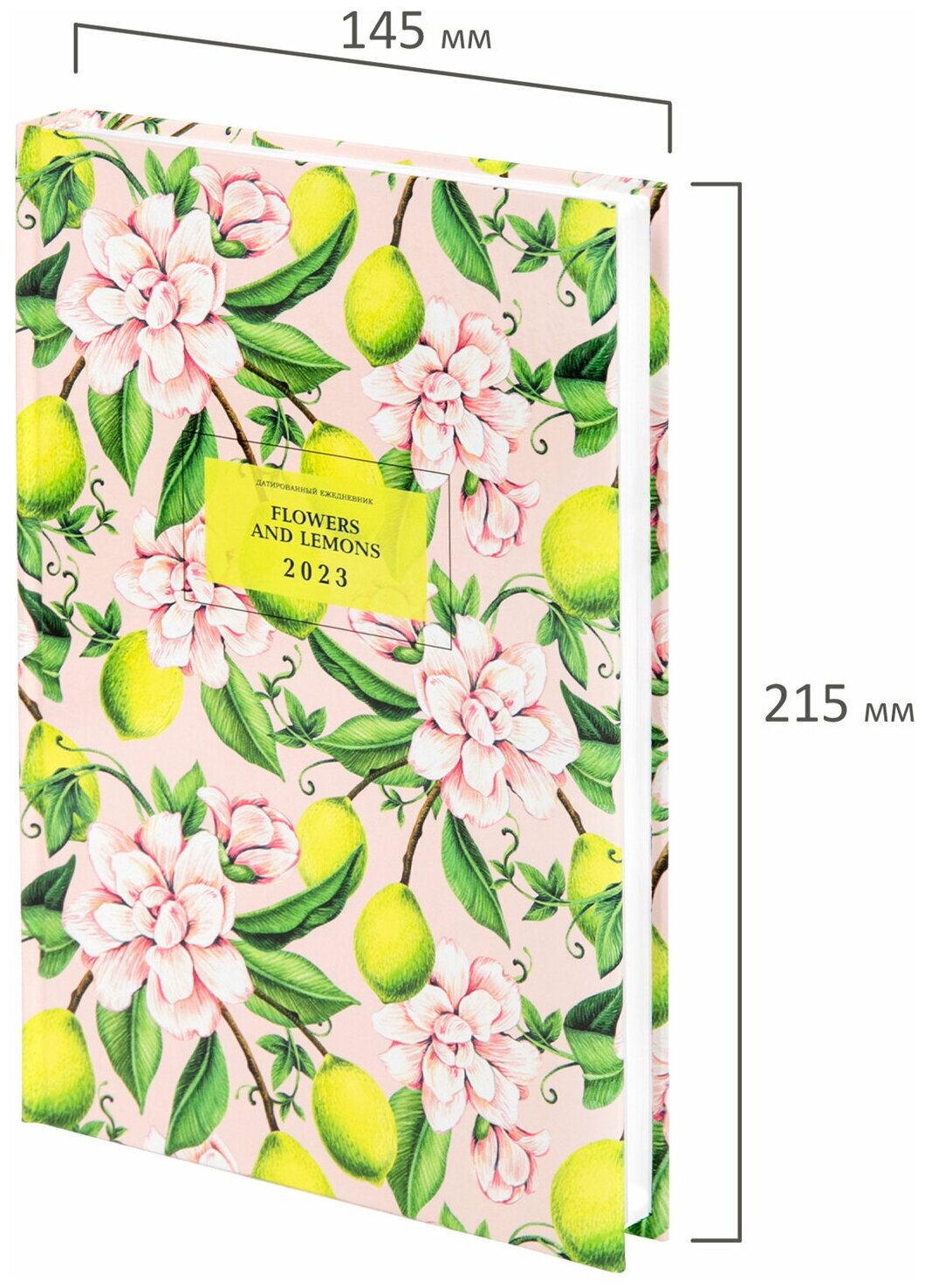 Ежедневник датированный на 2023 (145х215 мм), А5, ламинированная обложка, "Lemons & flowers", 114195