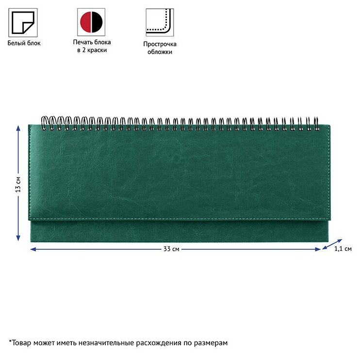 Планинг недатированный OfficeSpace Nebraska (330х130мм, 56л, зеленый кожзам) (Pn56_25233)
