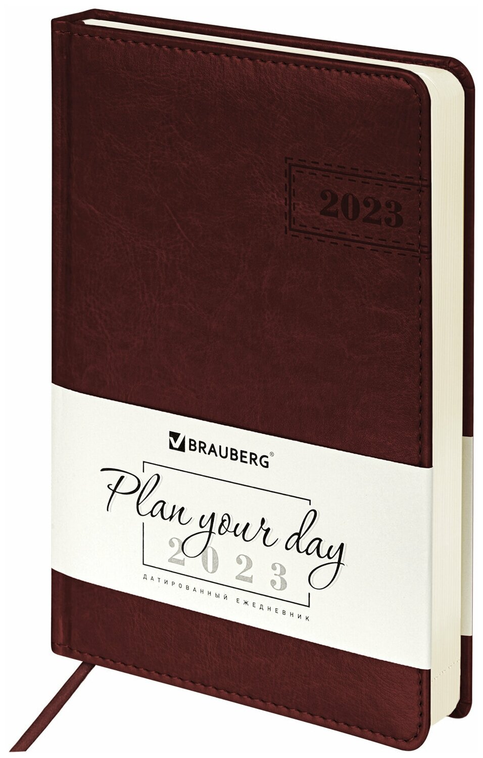 Ежедневник-планер (планинг) / записная книжка / блокнот датированный на 2023 год формата А5 138x213мм Brauberg Imperial, под кожу, бордо