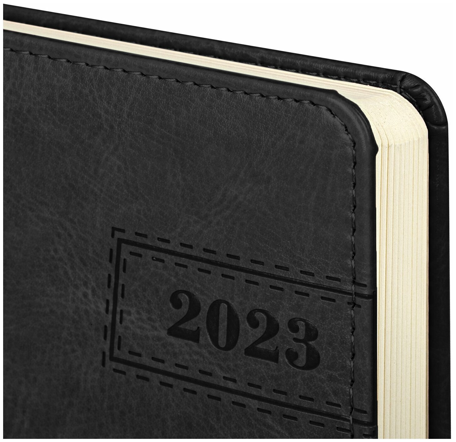 Ежедневник-планер (планинг) / записная книжка / блокнот датированный на 2023 год формата А5 138x213 мм Brauberg Imperial, под кожу, черный информация: