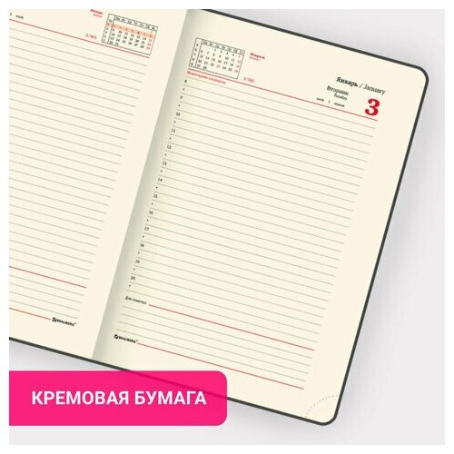 Ежедневник датированный BRAUBERG 2023 А5 138x213 мм "Imperial", под кожу, черный, 114036 490 ₽