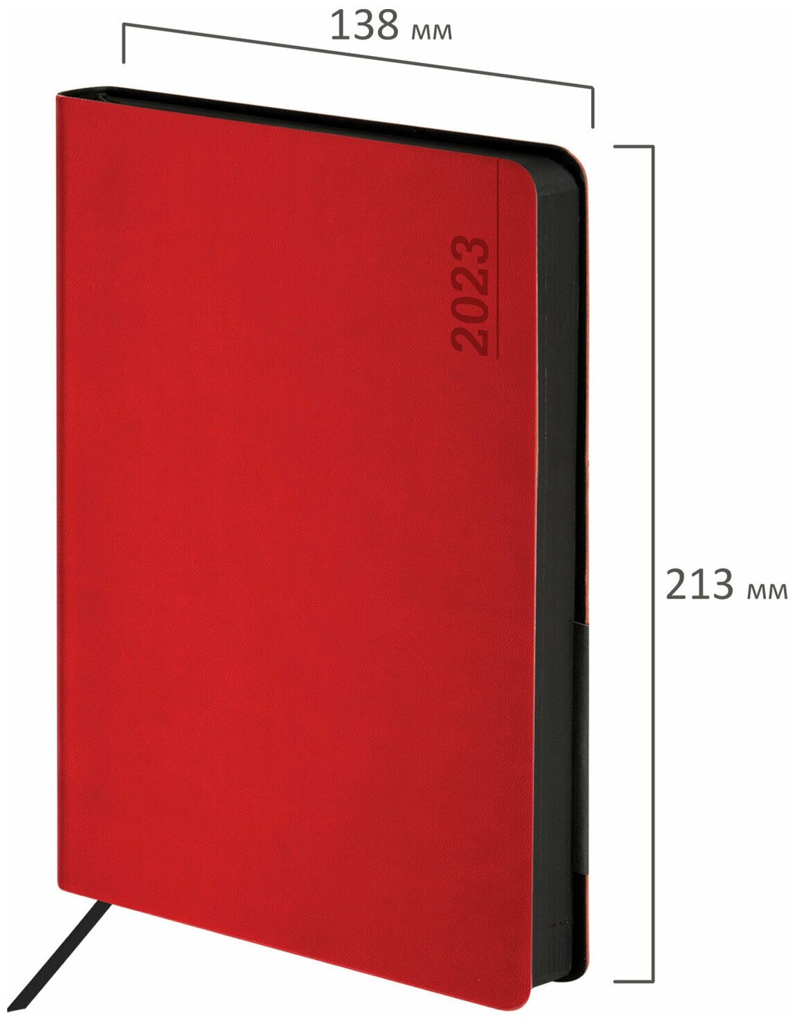 Ежедневник-планер (планинг) / записная книжка / блокнот датированный на 2023 год формата А5 (138x213 мм) Brauberg Metropolis Mix, под кожу, красный информация: