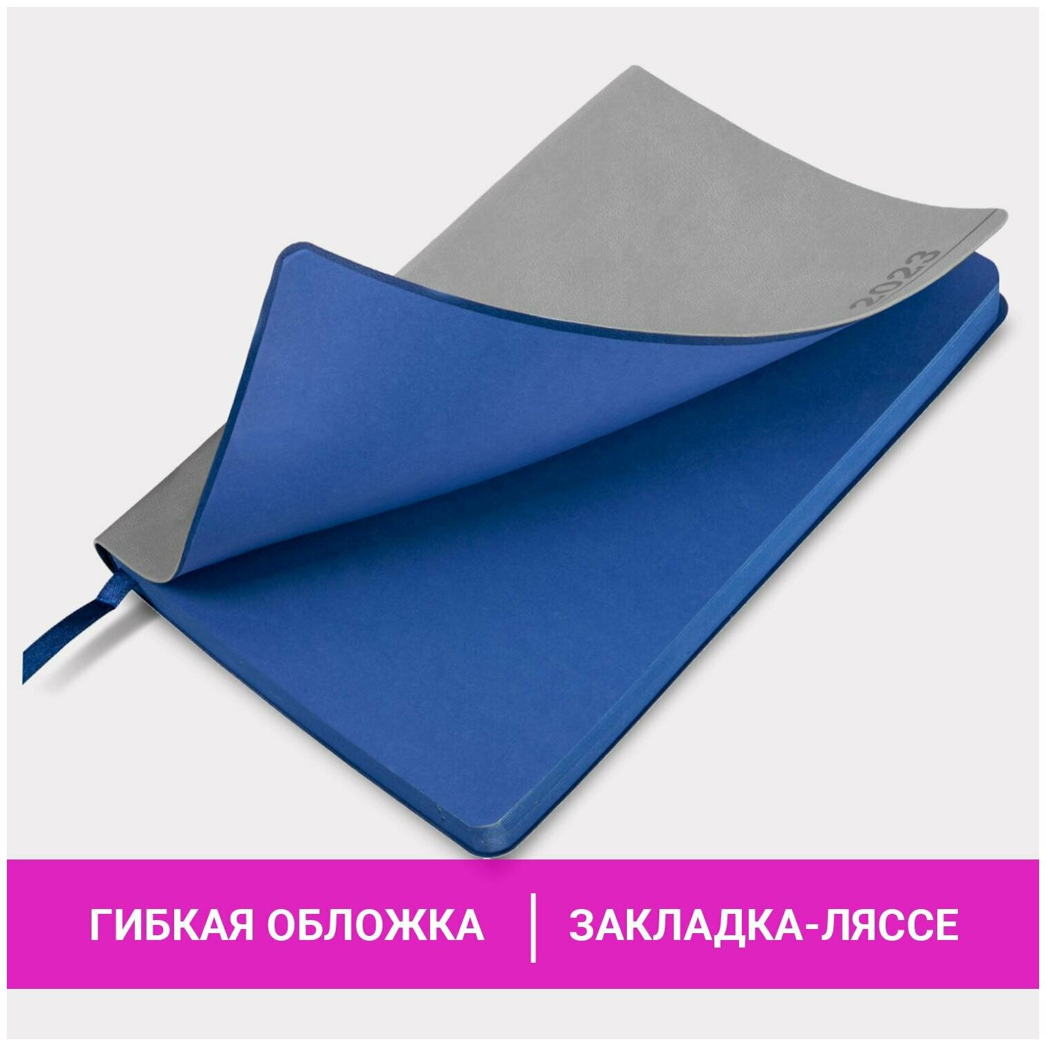 Ежедневник-планер (планинг) / записная книжка / блокнот датированный на 2023 год формата А5 (138x213 мм) Brauberg Metropolis Mix, под кожу, голубой