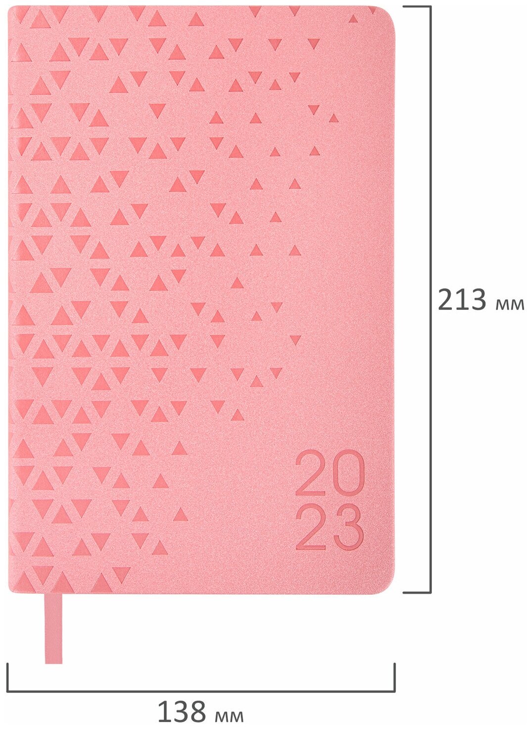 Ежедневник-планер (планинг) / записная книжка / блокнот датированный на 2023 год формата А5 (138x213 мм) Brauberg Glance, под кожу, розовый