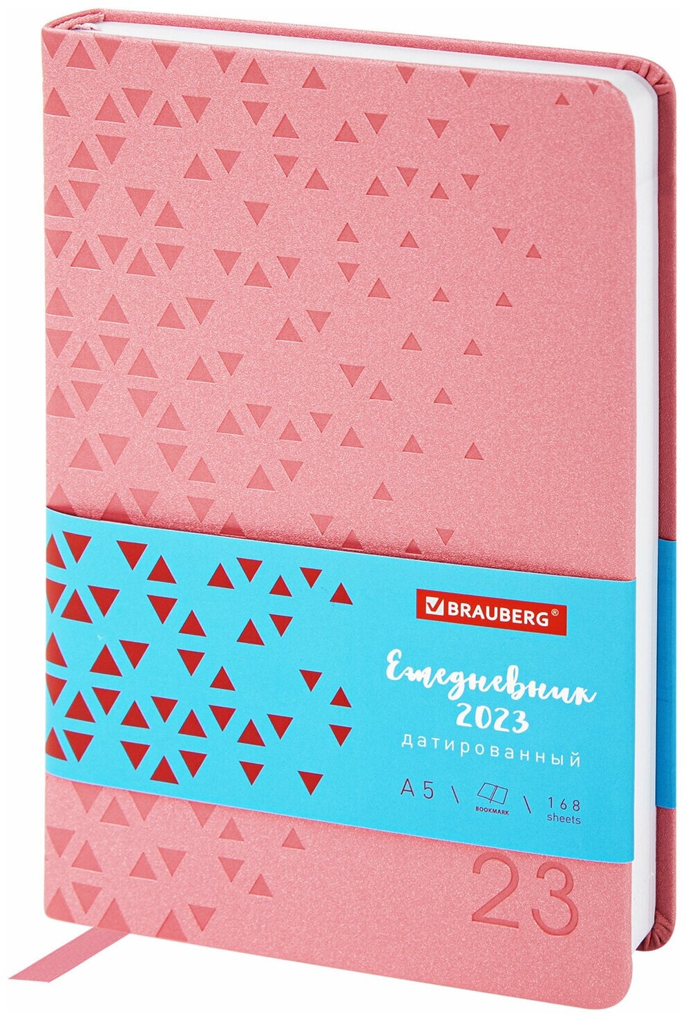 Ежедневник датированный на 2023 год А5 Brauberg Glance (168 листов) обложка кожзам "под кожу", розовый, 138х213мм (114097)
