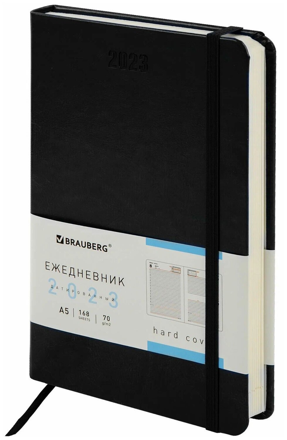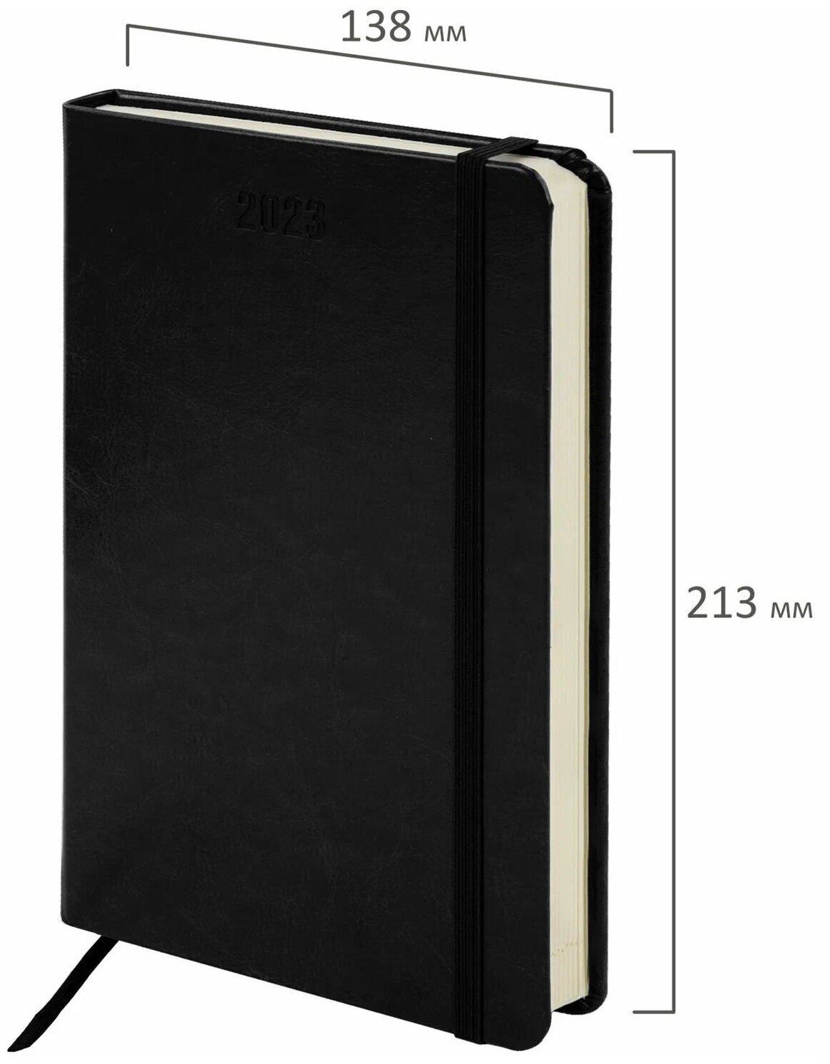Ежедневник-планер (планинг) / записная книжка / блокнот датированный на 2023 год формата А5 (138x213 мм) Brauberg Metropolis Special, под кожу, черный информация: