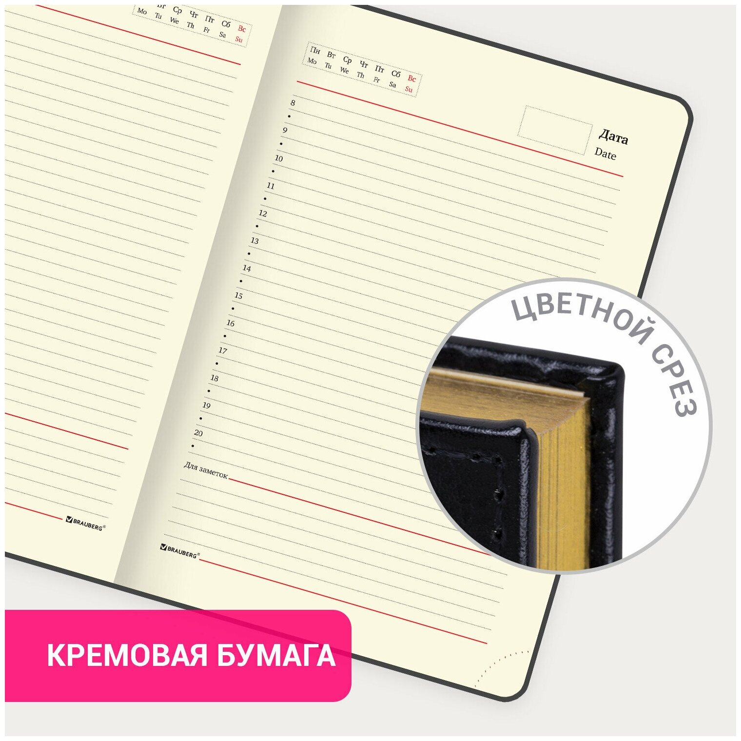 Ежедневник недатированный А5 138х213 мм BRAUBERG "FLAME", под кожу, 160 листов, черный, золотой срез, 1 шт 976 ₽