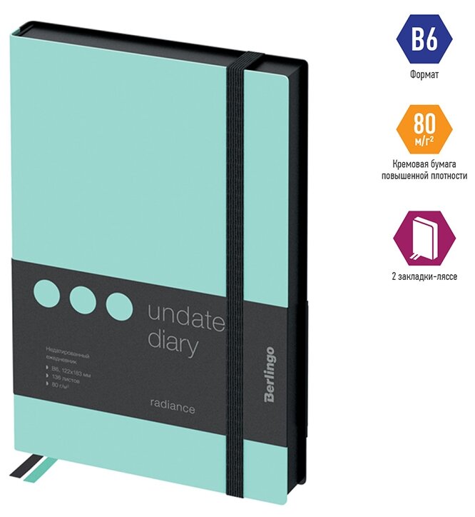 10 цен на Ежедневник BERLINGO недатир. B6, 136л., кожзам, "Instinct", черный/мятный, с резинкой