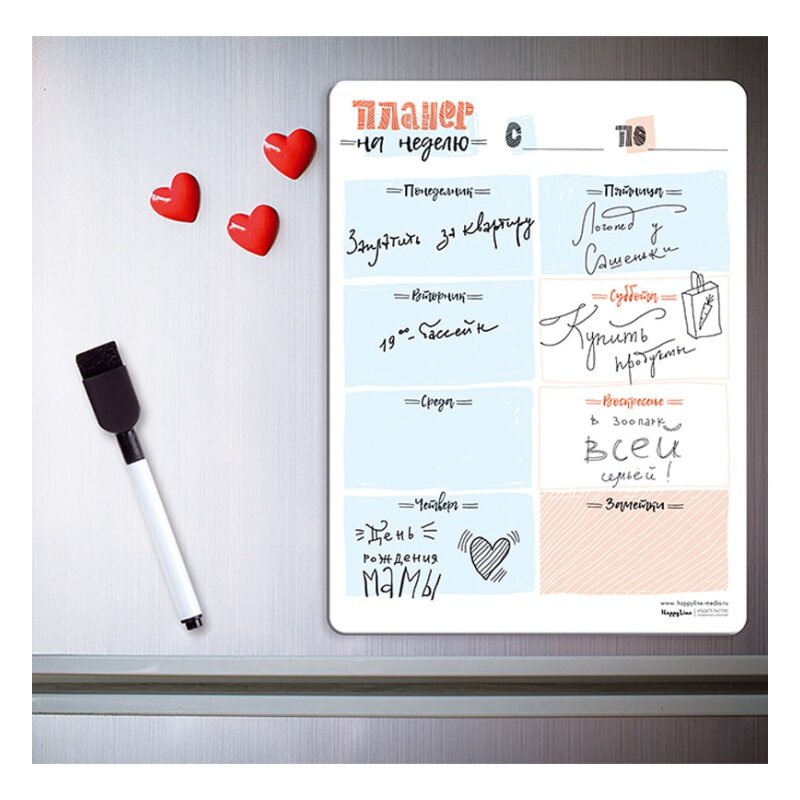 Планер магнитный с маркером HappyLine "На неделю", 22*29см, 282581 838 ₽