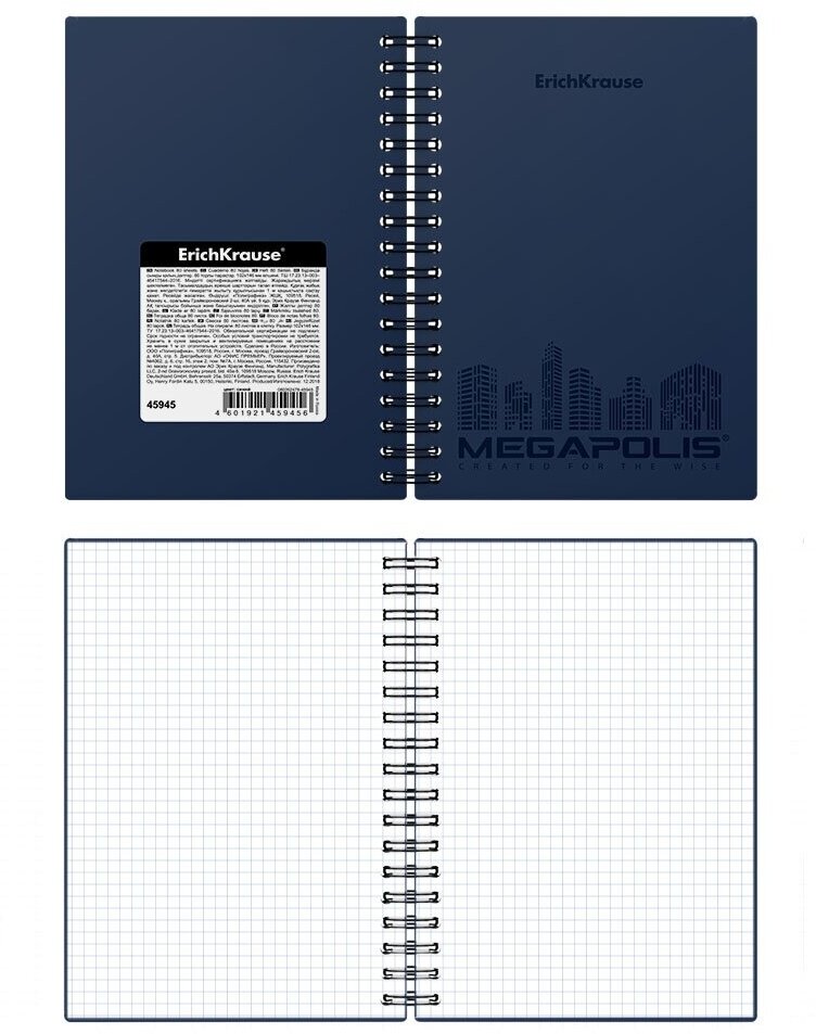 Тетрадь общая А6 ErichKrause MEGAPOLIS 80л обл.пласт,синий,спир,клетка45945 1466229 информация: