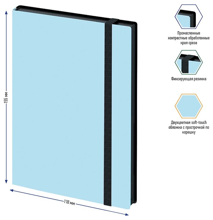 Отзывы на Записная книжка А6 80л., кожзам, Berlingo "Instinct", черный срез, черный/аквамарин, с резинкой 4260107515555