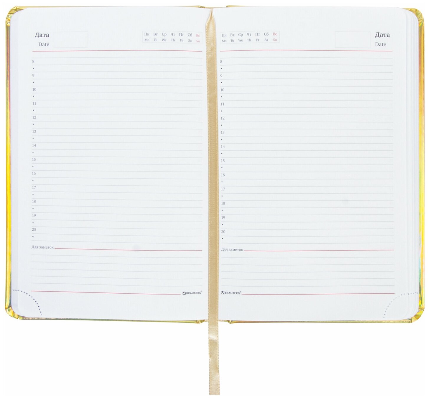 Ежедневник недатированный А5 138х213 мм BRAUBERG "Holiday" подкожу, 136 л., золотистый, 111673