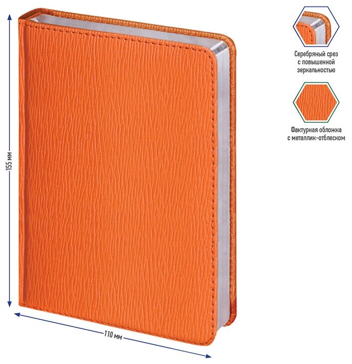 Ежедневник недатир. A6, 160л., кожзам, Berlingo "Starlight", серебр. срез, оранжевый информация: