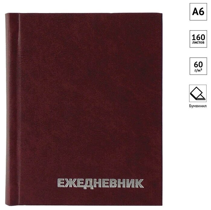 10 цен на Ежедневник недатированный А6 OfficeSpace (160 листов) обложка бумвинил, бордовая (Ен-БВ_1331)