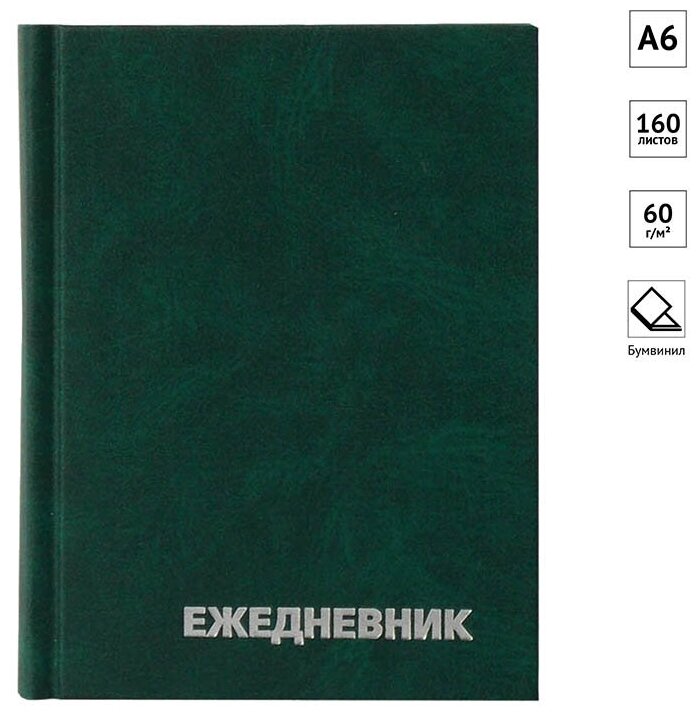 10 цен на Ежедневник недатированный А6 OfficeSpace (160 листов) обложка бумвинил, зеленая (Ен-БВ_1329)