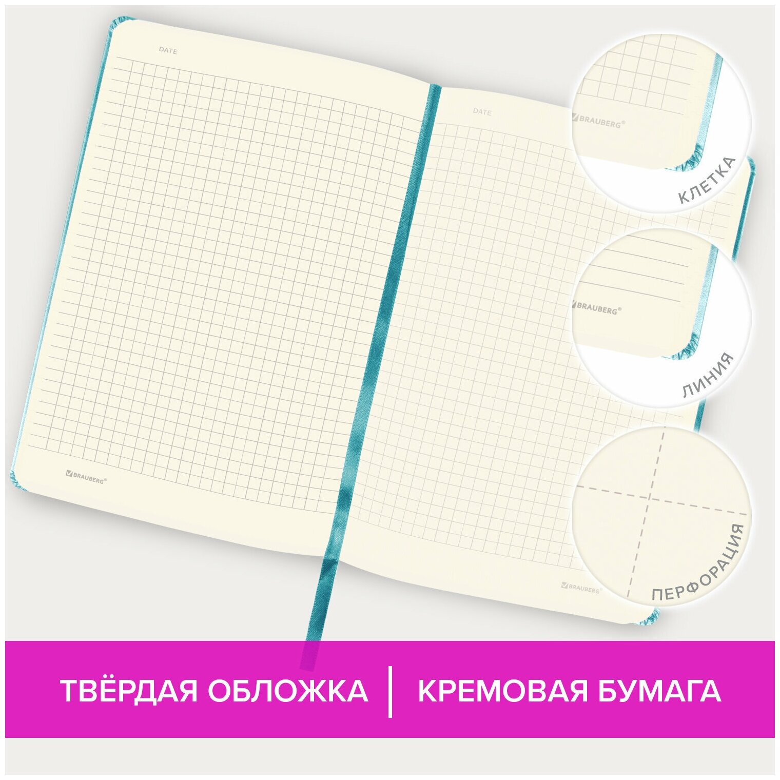 Блокнот А5 148х218мм, BRAUBERG ULTRA, балакрон, 80г/м2, комбинированный блок, 100л, бирюза, 113071 информация: