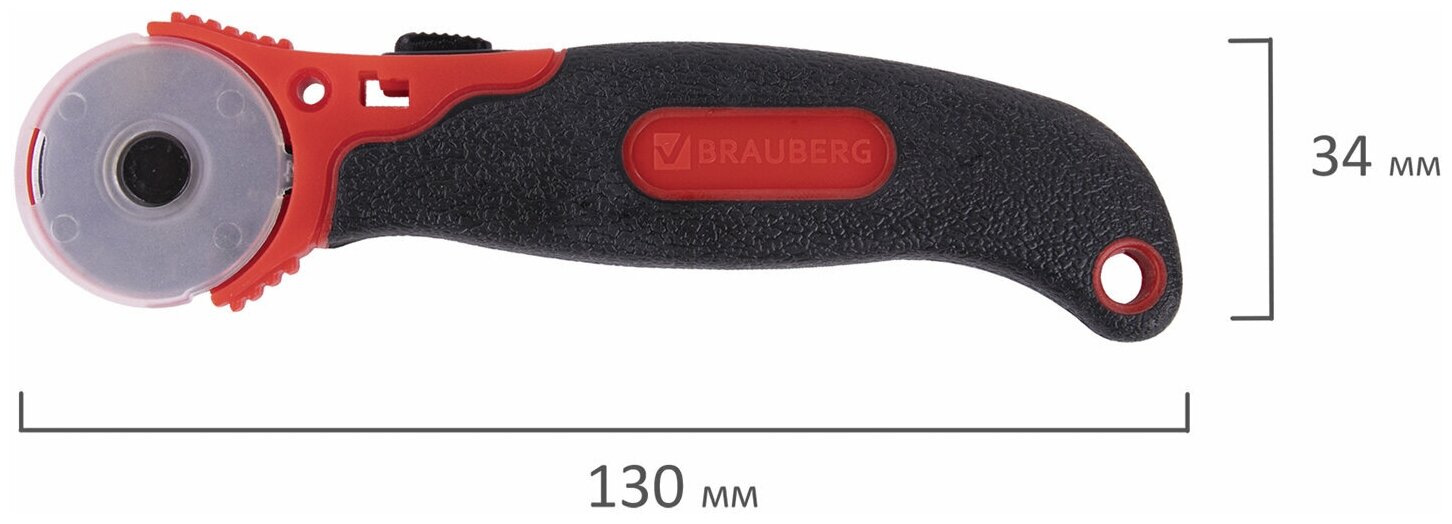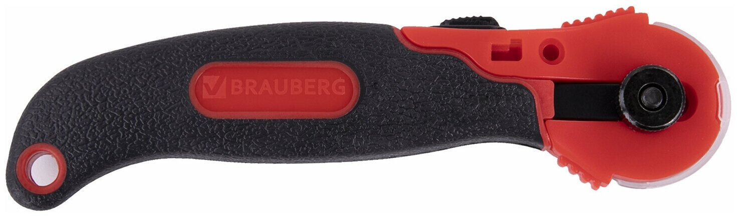 Нож раскройный роликовый 28мм Brauberg, круглое лезвие, резиновые вставки (238089)