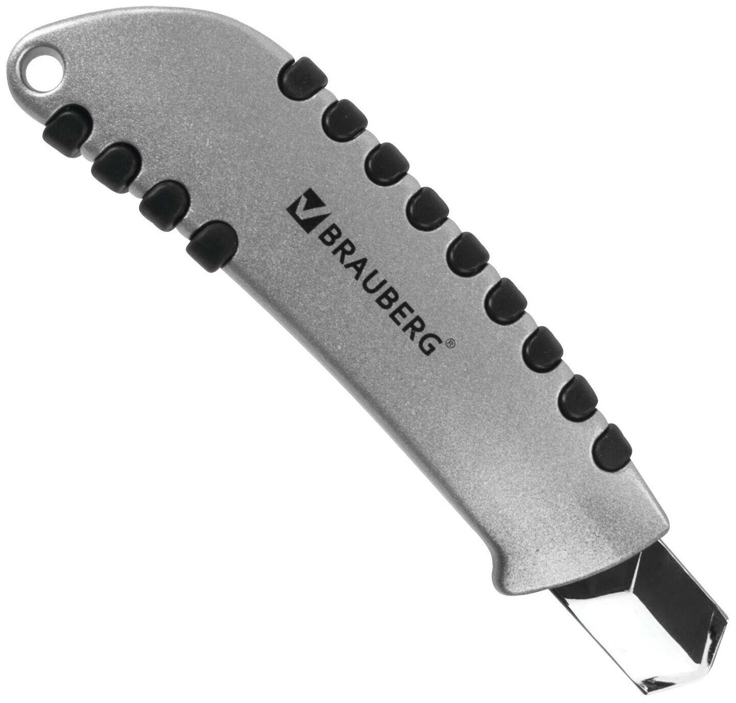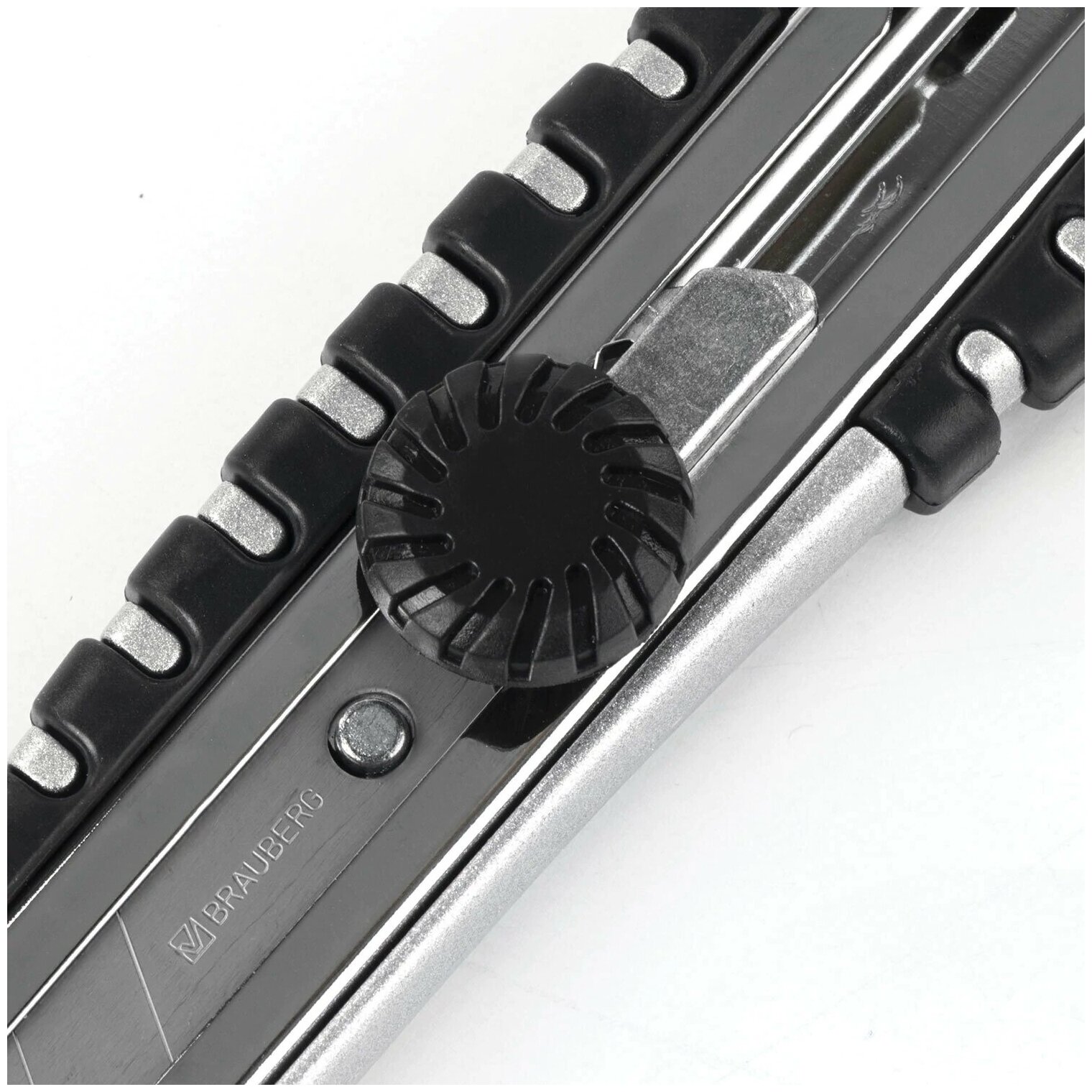 Нож канцелярский строительный для резки бумаги 18 мм Brauberg "Metallic", роликовый фиксатор, резиновые вставки, 237159