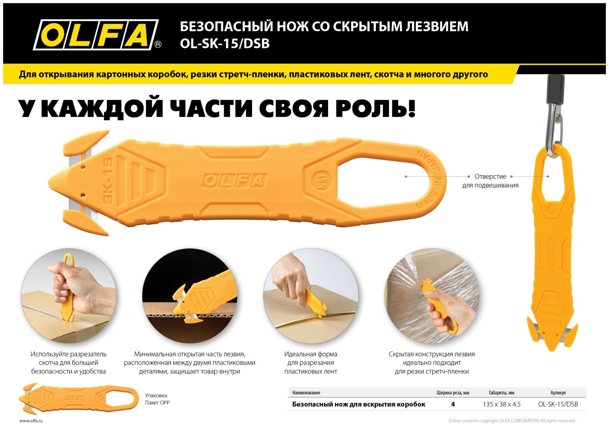 Безопасный нож OLFA для вскрытия коробок (OL-SK-15 DSB) информация: