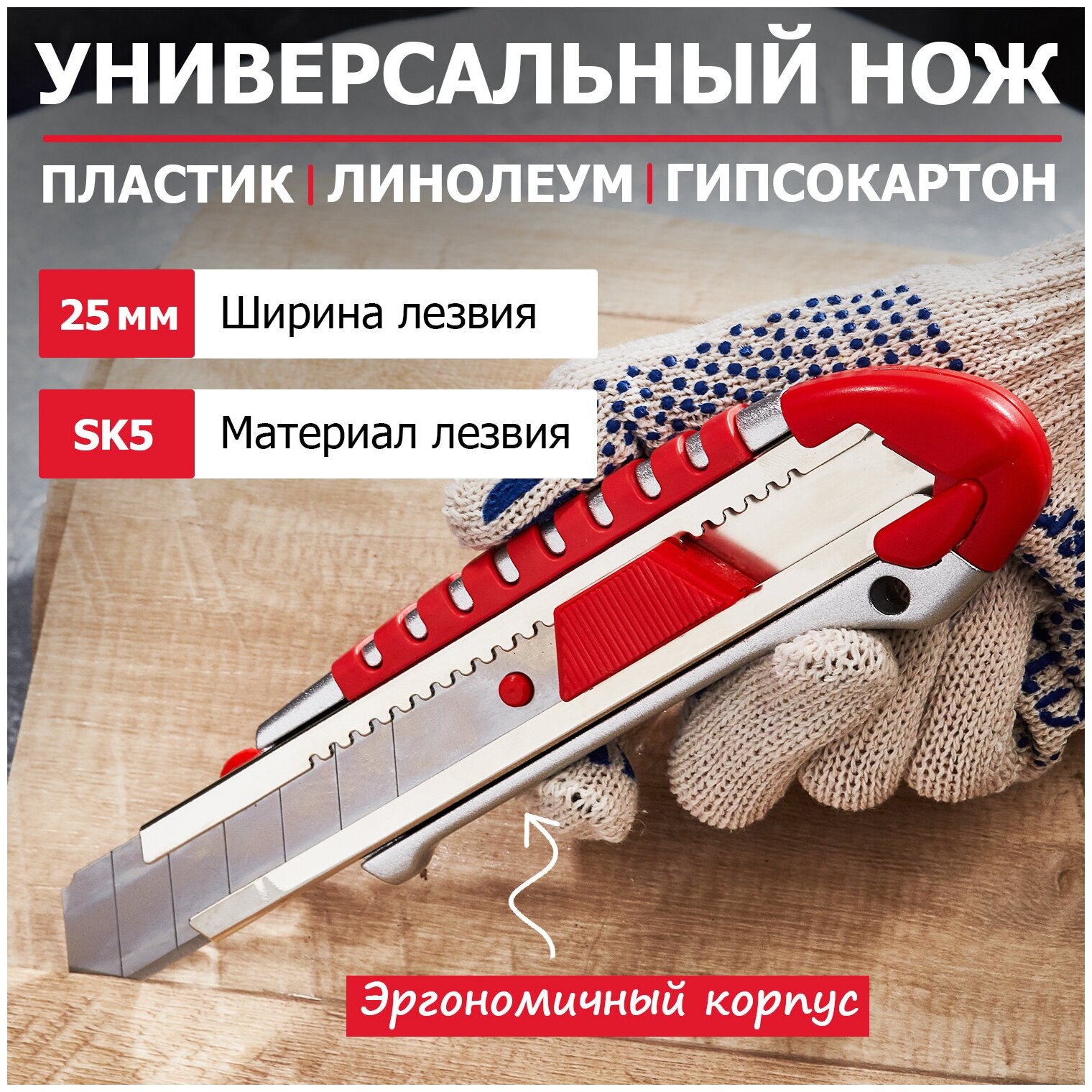 Нож с сегментированным лезвием 25 мм, REXANT 12-4918