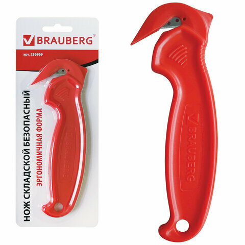 Нож складской безопасный BRAUBERG "Logistic", для вскрытия упаковочных материалов, красный, блистер, 236969 Комплект : 1 шт .