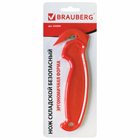 Нож складской безопасный BRAUBERG "Logistic", для вскрытия упаковочных материалов, красный, блистер, 236969 (цена за 1 ед.товара)
