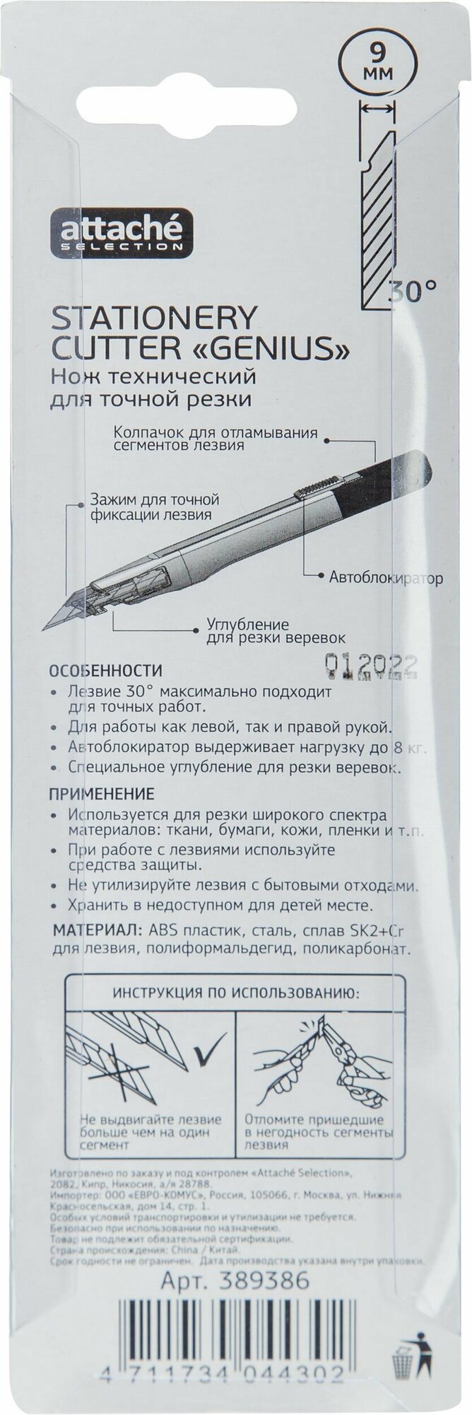 Attache Selection Нож канцелярский 9мм Genius,,фиксатор,дляправш./левш. 389386 информация: