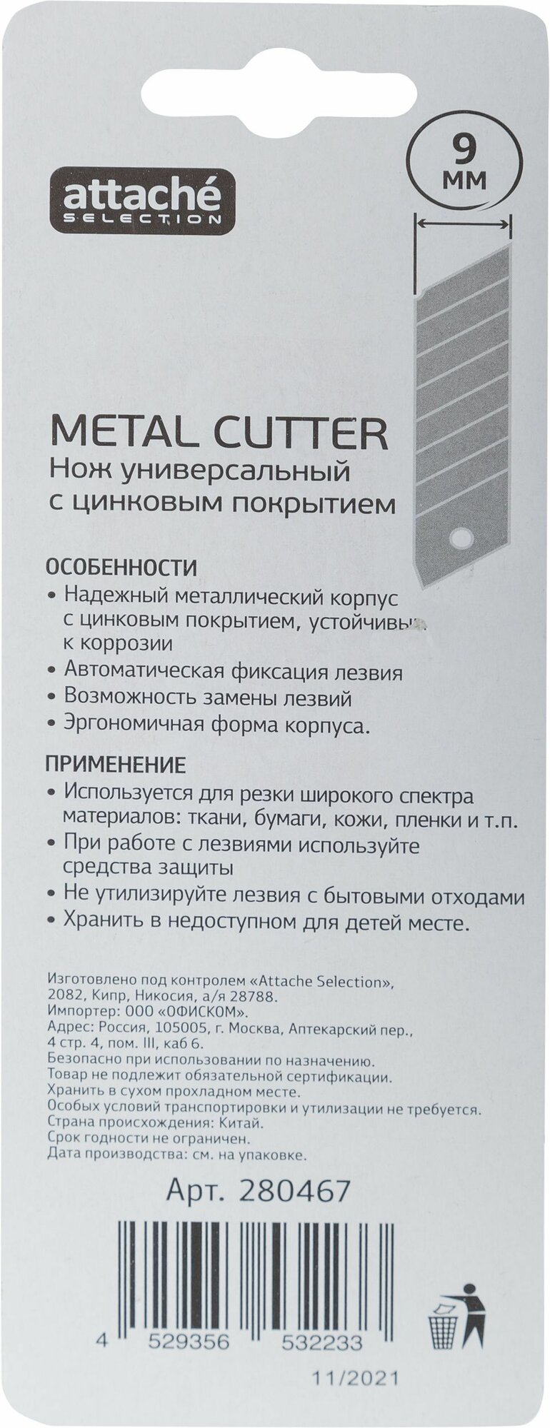| Ширина лезвия | 9 мм |