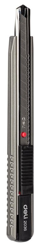Нож канцелярский Deli лезвие 9 мм, с фиксатором, усиленный, сталь, серый (E2036)