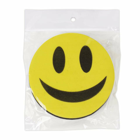 Стиратель магнитный для магнитно-маркерной доски, круглый, диаметр 90 мм, "Смайлик", STAFF "Basic", 236751 Комплект : 1 шт .