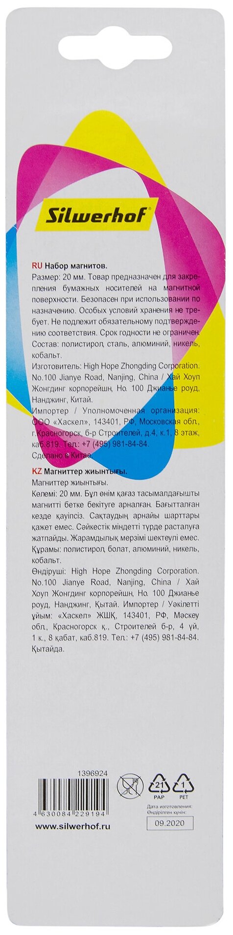 Магнит Silwerhof Classic для досок пластик ассорти диаметр 20мм круглый (упаковка: 8 штук) информация: