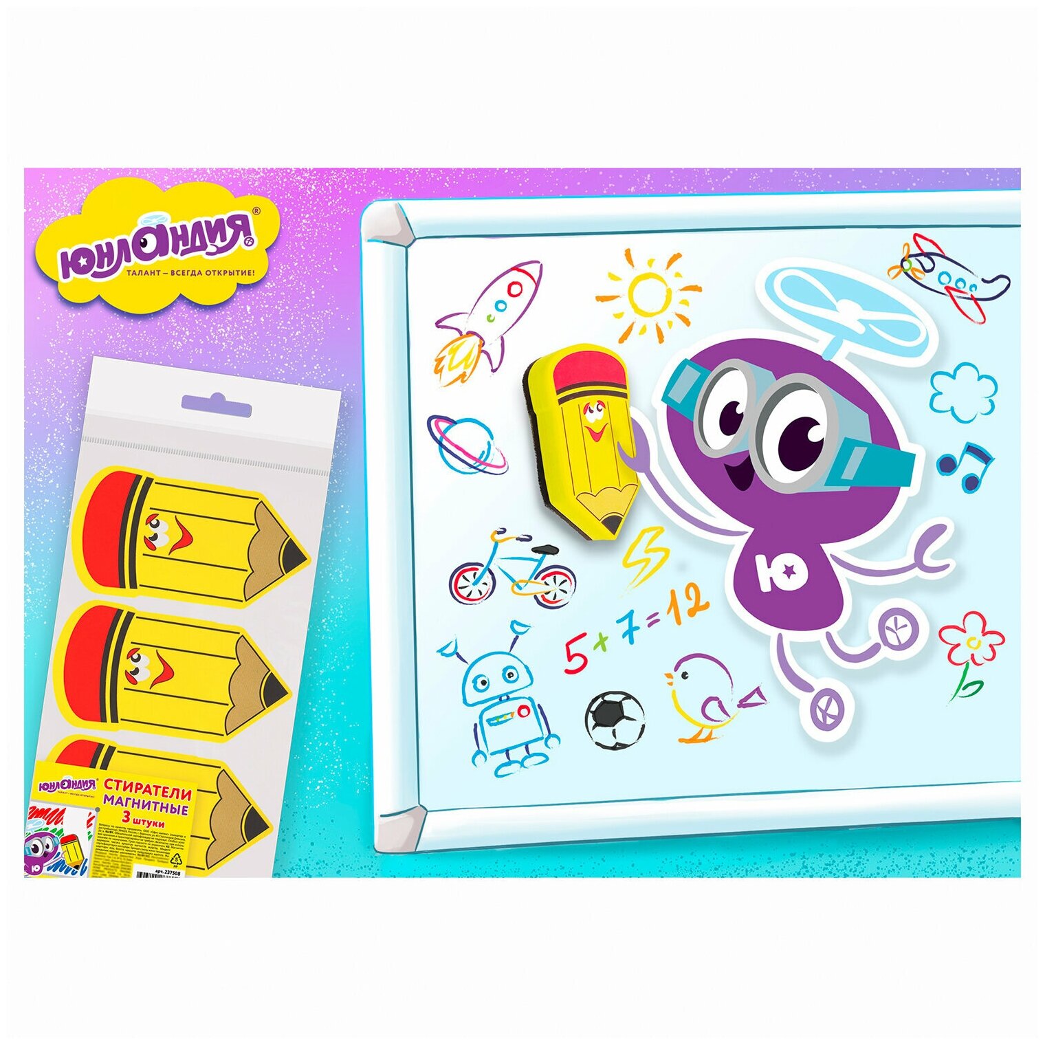 Стиратели магнитные для магнитно-маркерной доски юнландия Карандаш, 55х100 мм, комплект 3 ШТ.,237508 информация: