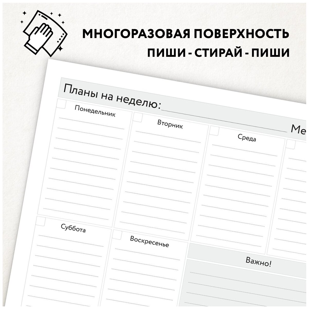 10 цен на Планер магнитный А3 - на неделю с трекером и важными делами, маркер с магнитом, Бело-серый фон #000 №16, planner_background_white_#000_А3_16