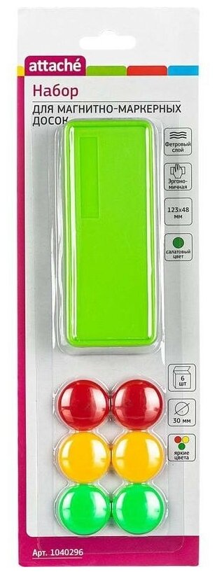 Набор принадлежностей для магнитно-маркерных досок Attache (губка-стиратель и 6 магнитных держателей)