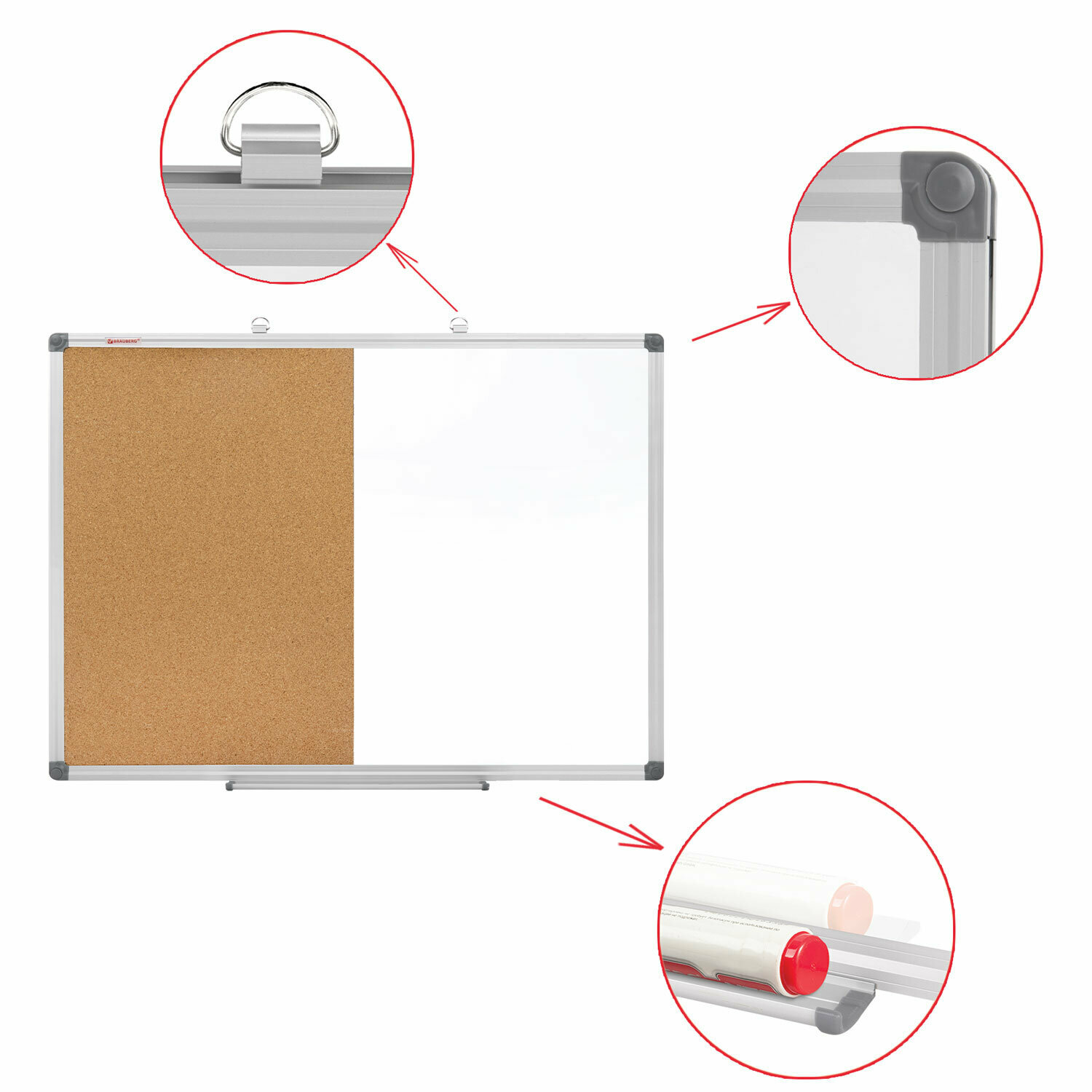 Доска комбинированная: магнитно-маркерная, пробковая для объявлений, 60х90 см, BRAUBERG "Extra", 237566 информация: